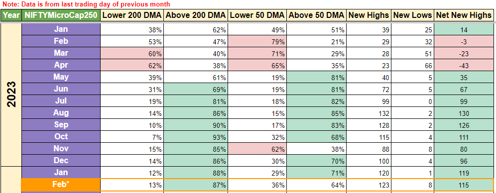 For reference, in 2023, One could have been aggressive with lumpsum investments in Jan-Feb-Mar-Apr-Nov as per data in the above tables. This would have resulted in better returns when we consider investing in the Indexes (whether it be Nifty50, Nifty500 or Nifty MicroCap250).