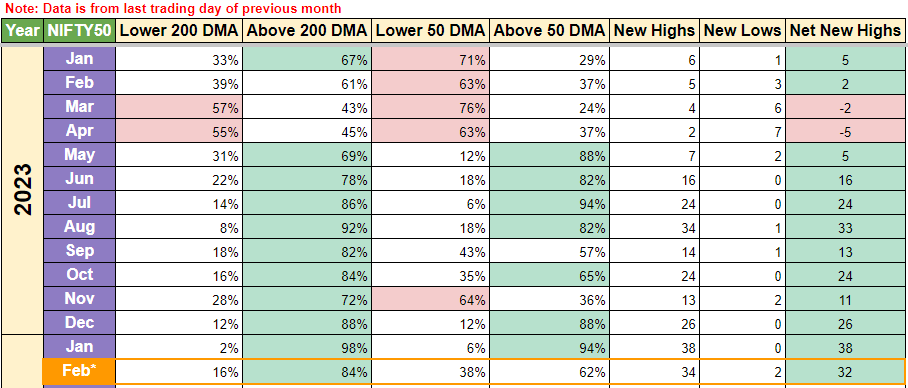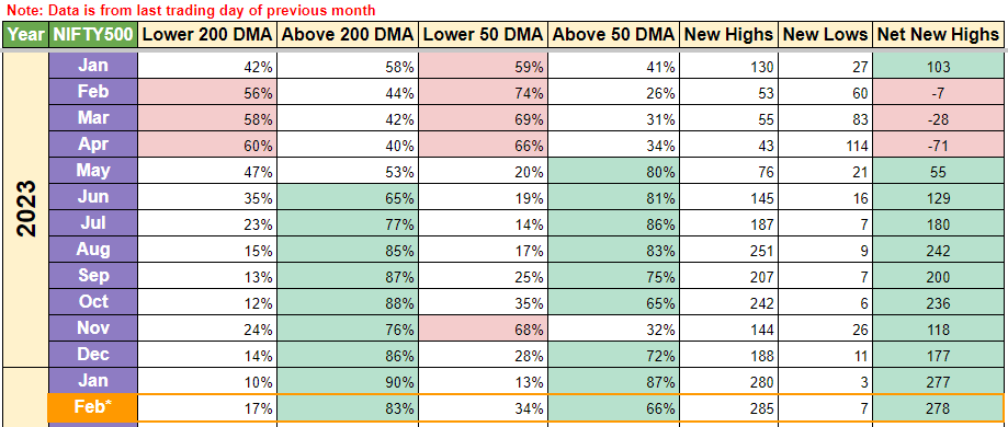 Above → % of Stocks in Nifty 500 Index above its 50 DMA price