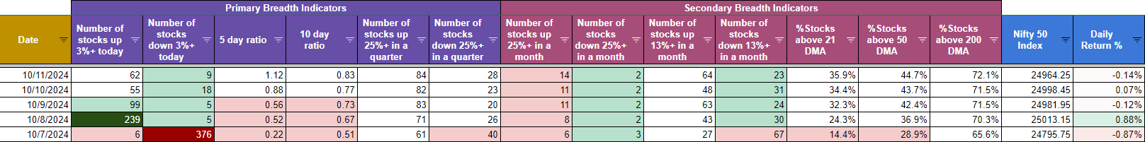 Let’s get to the meat of this week’s update and see how the Nifty Market Breadth Tables are looking now. Following are the links in case you missed the previous 3 updates :