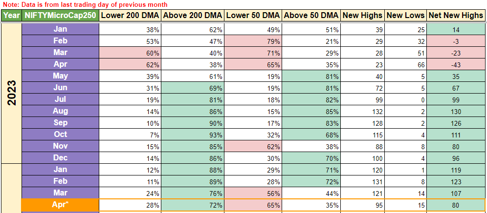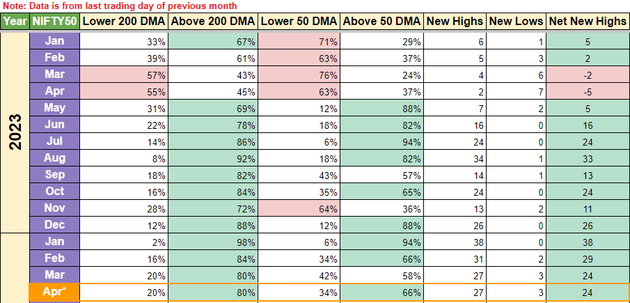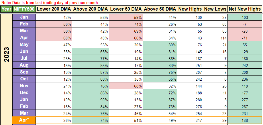 Above → % of Stocks in Nifty 500 Index above its 50 DMA price