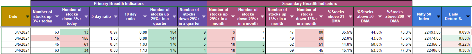 Let’s get to the meat of this week’s update and see how the Nifty Market Breadth Tables are looking now. If you remember I shared the table last week and mentioned that I’ll be sticking with the planned SIP for now. Following are the links in case you missed the previous 3 updates :