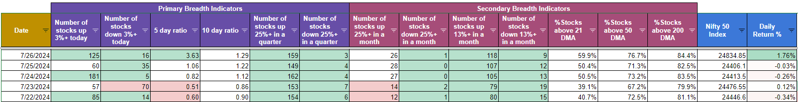 Let’s get to the meat of this week’s update and see how the Nifty Market Breadth Tables are looking now. Following are the links in case you missed the previous 3 updates :