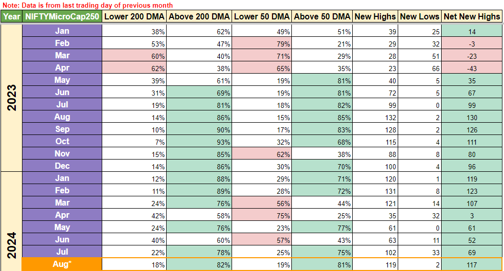 And this is the 3rd week in a row where I feel the need to apologize. There is no interesting update here to give in terms of data change week over week. The numbers are solid and just mirror the last week itself. Looks like it was indeed a “flattish” week for MicroCaps just like we had for Nifty 500.