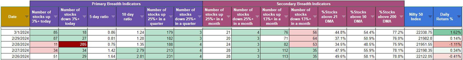 Let’s get to the meat of this week’s update and see how the Nifty Market Breadth Tables are looking now. If you remember I shared the table last week and mentioned that I’ll be sticking with the planned SIP for now. Following are the links in case you missed the previous 3 updates :