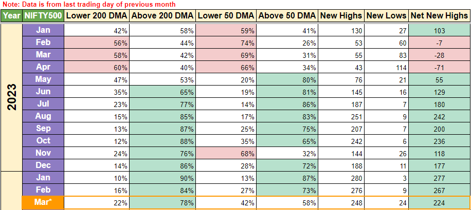 Above → % of Stocks in Nifty 500 Index above its 200 DMA price