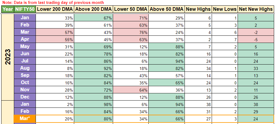 Above → % of Stocks in Nifty 500 Index above its 50 DMA price